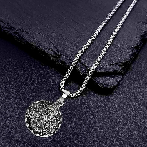 Style Hindu Lord Bajrangbali Hanuman Locket With Chain idol Monkey God of Devotion Locket Silver Zinc And Metal Pendant Necklace Chain For Men And Women (1 Pc)